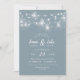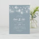 Prisvärda anpassningsbar-utskrivna bröllopsinbjudningar med en enkel använda för anpassning. Den här chicen är utformad med strängar av glödande sträng ljus och burk på en dammig blå bakgrund. Anpassa inbjudan med information om bröllop eller anpassa texten till använda för alla händelser. Använda designen verktyg om du vill välja valfri bakgrund färg, lägga till foton och anpassa texten typsnitt och färger så att du får en unik design för bröllop.