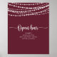 Den här roliga strängen ljus burgundy bröllop öppen pub-poster är perfekt för ett klassiskt bröllop. Utformningen har en vacker, handmålad ljus i en burgundisk bakgrund.