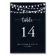 Det här bröllop-bordsnumret för den roliga strängen ljus är perfekt för ett enkelt bröllop. Utformningen har en vacker handmålad ljus i mörk blått bakgrund. Det här är ett bordsnummer från dubblans sida. Lägg till varje bordsnummer som du behöver i din kundvagn individuellt.