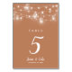 Prisvärda utskrivna bordsnummer i bröllop med en enkel DIY-mall för anpassning. Den här ritade chicen har flera strängar av den glödande strängen ljus och Mason burk mot bakgrund av den rostiga orangen. Anpassa varje bordsnummer som du behöver och lägg till varje enskilt i kundvagnen (observera: om du lägger till ett stort antal kort i kundvagnen kommer det att resultera i utskrift med samma nummer). Använda designen verktyg att välja typsnitt och färg som du vill ha eller ladda upp egna foton för att skapa en bra design för din bröllop-bord-dekanter!