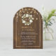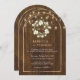 Anpassa den unika Rustic Wood String Ljus Guld Arch Magnolia Wandebröllop-inbjudan (MED OSA WEBSITE PÅ BACK) med din egen text.