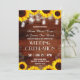 Inbjudan till trendigets elegant innehåller burk, sträng ljus, solblommor i fullt blomma på bakgrunden till jordskorpan. Klicka för att anpassa ytterligare om du vill ändra teckensnittet stil eller lägga till mer text till kostym efter dina behov.