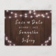 Låt vänner, familj och gäster veta att det är officiell! Ditt bröllop-datum har fastställts! Skicka ut de här ljus-vykorten för rustik sträng så att alla kan spara datumet i sina kalendrar som bröllop är på! Kolla in resten av samlingen för matchande artiklar för den stora dagen till kom!