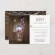 Rustic RSVPs med en mason burk fylld med violett, lila och lavender-blommor med baby andedräkt och grönsak och med ett lila band. Kortets baksida har vit ljus med en blek violett mason burk över en vedsnematod från friland. Om du vill ha den här designen på en matchande produkt, eller behöver hjälp, kontakta mig genom min butik.