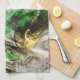 Rustic struktur under flytande grönt och gult bläc kökshandduk