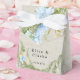 Utformningen har en utskriven färgad blommigt inslag i skuggor av grönt och en dammig blåfärgad blommigt med utandning med baby blue fjärilar på en arbetsytans bakgrund. Kalligrafi eller textskrivning med designteckningen. Blanda och matcha samlingen biet. Underbar för bröllop firande!