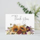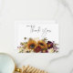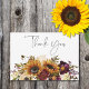 Den här enkla men elegant bröllop tacksamma kortdesignen har en rustik vattenfärgad bukett av burgundött vin, solrosblomma guld gult, kräm och lila blommor med grönt. Det är en del av Rustic Summer Sunwers & Burgundy Blommigt Bröllop Suite skapat av enbart Farmhouse Press.