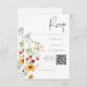 Den här enkla svarskortsdesignen för elegant bröllop har en rustik vattenfärgad bukett av röda, gult, bruna, grädde, burgundi och lila, vildblommor med grön färg. Det är en del av Rustic Summer Wildblommor & Sunwers Bröllop Suite skapat av enbart Farmhouse Press.