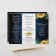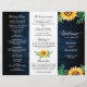 Elegant och det moderna trefaldiga land-bröllopsprogrammet har ljusa blommar av gult solrosor och baby utandning/gipsophila blommigt ram med löv på marinblått laduvirbakgrund. Hitta fler matchande utformningar och variationer från min "blissweddingpaperie"-butik. Och kontakta mig gärna för ytterligare anpassning eller matchning av objekt.