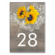 Solroskort för blommar, rustiskt trä och vintage snöre bröllop-kort för bordsnummer
