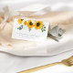 Rustiska solblommor och vilda blommor dekorerar toppen på framsidan och ett mindre samordnande motiv finns på baksidan. På framsidan är ert namn och bröllop-datum i en enkel typografi, men det finns en linje att ge skriva till dina gästers namn. Du kan enkelt anpassa texten och du kan också ändra färgen för bakgrunden om du vill genom alternativet Klicka för att anpassa ytterligare.
