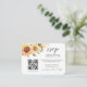 Modern solblomma av rustisk elegant och QR-kodkort för bröllop OSA. OSA kort med handmålade vattenfärgade solrosor och grönt med modernt kalligrafi-skript och QR-kod. Du kan anpassa ordalydelsen, teckensnittet stil, färg och storlekt framför och bakom detta botaniska OSA kort. Matchande objekt är tillgängliga.