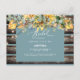 Rustic Teal & Solros Inbjudningskort för möhippan. Eukalyptus foliage, ljus och trä. Trästängsel. Vit typografi.