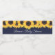 Vattenflaska etiketter med rustik på marinblå solblommor är vackra och delikata för dina babygäster.