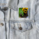 Skapa en nyckelgåva eller partiförmån när du personifierar den charmerande Rustic Sunblommor och Cowboyboots Land Westerna Bröllop Button med namnen av bruden och brudgummen och deras ceremoniedag i giftermål. Den här avslappnaden har en western knapp i anpassningsbar bröllop med klassad grönt en fyrfärgad blommigt av bruna cowboystövlar, en bukett av blommar för solrosor i gult och en vit möhippa på lingträ med gammaldags vagnhjul och suddig naturlig bakgrund.