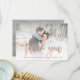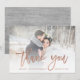 Den här eleganten, tack vare bröllop, har du ett kort med faux ro guld skripttypografi, med ditt personliga foto och ett grått-trä på baksidan.