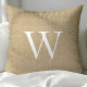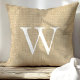 Anpassningsbarnas designade kudde med Rustic Tan Burlap Struktur. Anpassa den med initialer, namn eller annan anpassningsbar i monogrammet. Klicka på Anpassa om du vill lägga till egen text och bilder om du vill skapa en unik utformning av en sorts kuddedesign!
