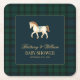 A rustic horse themed baby shower featuring preppy vintage horse on a luxury designer plaid in green and blue colors. You can easily personalize this with your details.
