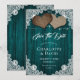 Komplettera din romantiska bröllopsfest med den vackra burlap- och snöre bröllop spara datum-kort med två burlap-hjärtan på en teal lada-bakgrund som dekoreras med sträng ljus och vit blommigt snöre. Matchande objekt är tillgängliga.