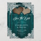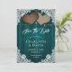 Komplettera din romantiska bröllopsfest med den vackra burlap- och snöre bröllop spara datum-kort med två burlap-hjärtan på en teal lada-bakgrund som dekoreras med sträng ljus och vit blommigt snöre. Matchande objekt är tillgängliga.