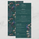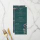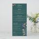 På den här roliga och moderna bröllop-menyn finns handdragna "Chinoiserie-stil" illustrationer av en blå och teal fredsfågel omgiven av Magnolia greenery, med vibrerande grädde och magnolia blommor av rosa, allt mot bakgrund av elegantens grönt av teal. Baksidan har en blommigt för elegant och fågeln mönster med koordinerande illustrationer. All text kan redigeras. Anpassa med dina uppgifter om bröllop, inklusive brud och groom namn, aptizer, huvudkurs, dessert bord och drycker.