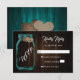 Personliga turkos rustika murar glas bröllop RSVP-kort med en murar glas och två säckvävshjärtan med initialer mot en rustik träd bakgrund. Anpassa enkelt online.