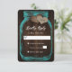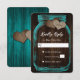 Rustiskt teal-bröllop OSA-kort med en mason burk med två burlap-hjärtan mot en rustisk träbakgrund. Anpassa enkelt den här romantiska onlinen för teal OSA. Matchande artiklar som är tillgängliga för att komplettera detta rustiska teal bröllop OSA-kort.