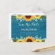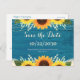 Rustic Teal Wood Solros Bröllop spara datum Vykort