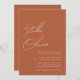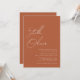 Modern elegant minimal och enkel radioaktiv terracotta-kalligrafi-skript namn i modern typografbröllopsinbjudan med QR-kod längst bak i inbjudan.
