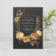 Byt ut gästerna och skapa en bröllop-upplevelse som inte liknar någon annan med den här Rustic Terracotta Elegant Mörk Moody Fall Wedding-inbjudan. Terracotta och brinnande blommor i orange är varma och jordnära mot en sofistikerad svart bakgrund som skapar en häpnadsväckande kontrast som är perfekten för ett fallbröllop. Riken färg väcker den mysiga stämningen, och skapar att gästerna känner sig varma så fort de får inbjudan. Denna utformning är idealisk för par, som kärlek, den tidlösa appellen av elegans i kombination med en djärv, modern och moody tvist. Den här inbjudan är ett enkelt anpassade att lägga till din personliga beröring, och det är därför som vi ska göra ett oförglömligt fallbröllop. Ordna dina inbjudningar i dag och börja resan till en dag som är så speciell som kärlek!