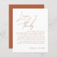 Ställe de här korten vid bord-inställningen för var och en av dina gäster på bröllopsmottagningen. Kortet har det roterande terracotta-skriptet Kärlek + Tack för speciellt meddelande.