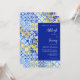 Rustic Tile Blue Gult White Bröllop Inbjudningar