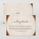 Share all your important wedding information in style with this rustic details card featuring a soft wood grain tree ring background and elegant black script “wedding details” heading. Use the customizable text to add accommodations, reception details, transportation info, dress code, wedding website, or any extra notes your guests need for the big day. The neutral colors and simple design coordinate perfectly with woodland, barn, boho, and country wedding invitation suites that use wood slice or tree ring artwork. Printed on premium cardstock, this enclosure card tucks neatly into your invitation envelope and helps keep all your logistics clear and organized for guests.