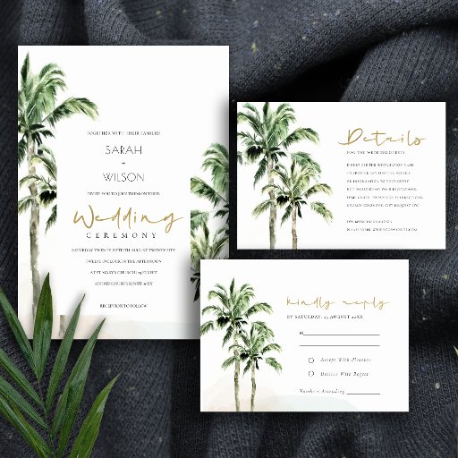 Rustic Tropical Beach Palm Trees Wedding Invite Tack Kort