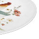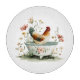 Den här vita vattenfärgsparningen har en kyckling som är kapslad i en blommigt skål och ett regalt tupp på ett vitt betesstaket, som var och en omges av vibrerande blomningar. Kycklingens röda komb och fläckiga fjädrar kontrasterar på ett lekfullt sätt med mjuka daisy och vilda blommor, medan tupp:s plåga och grönt svan uppmärksammar foxglovar och varmtonade blommar. Tillsammans blandar de rustik charm och storybook i en mysigt, naturkyld sammansättning.