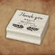 Rustik typografi personligt bröllp är för tack frimärke. Skapa ditt eget rustiska tack till frimärke för löven. Utformningen har texten Tack i trendigets typografi, brud och groom namn och bröllop. Anpassa frimärke med dina data.