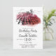 En rustisk vin-smakande vinodling i födelsedagsfest inbjudan, med en vinodlingsillustration med stänk av vattenfärg i färg i rött vin. En modern rustik stil för en eftermiddag smakar vin med Hors d'oeuvre och vin för att fira er speciella dag.