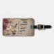 Rustic land vintage och personlig med ditt namn, adress och mobila nummer - detta bruna burlap-designade bagagemärke med vacker plommonfärgad blommigt för lila av plommon - säkerställer att du har all din kontaktinformation på bagaget. Texten på märkrns framsida säger: "Fru", ert namn. Baksidan av märkrn har ditt namn och adress. BURLAP-/LINENDESIGN SKRIVS UT PÅ DIN BAGAGE-TAGG.