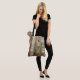 Den här väskan visar på en noggrant utarbetad lapptäcke av vintage tidningsklippen, som monterats sömlöst för att framkalla en rustik och nostalgisk ambians. Åldrasen pappra struktur, i kombination med klassisk typografi och historiska utdrag, skapar en tapetik av gårdagens charm. De monokromatiska sepiatonerna förstärker det antika estetiska, skapar det som ett tidlöst biet som förkroppsligar själva kärnan i vintagens tryckta medier.