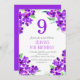 Lila, violett blomma vattenfärg 9th Födelsedagsfest inbjudan. Hand målade själv vattenfärgen lila blommor. Anpassa den med dina detaljer.