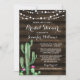 Rustic Watercolor Cactus Barn Wood Möhippa Inbjudningar