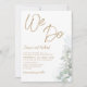 Det här är en modern och elegant "We Do"-kalligrafbröllopsinbjudan i guld mot en vit bakgrund med tillägg av grönt eucalyptus och samordning av botaniskt inslag. Enkel att anpassa texten för att skapa något som är unikt för verkligen.