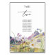 En vacker vildblomma och bröllop-bergsdesign. En unik design som användor vattenfärgen vildblommans botaniker och ett vattenfärgsbergslandskap i bakgrunden. En modern blommigt för vild med berg och floder vid sjöar. Ett bordsnummer i elegant bröllop med modernt inslag. Det finns också möjlighet att matcha bröllopsinbjudningar och andra artiklar i kontorsartiklar.