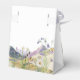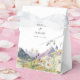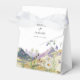 En vacker vildblomma och bröllop-bergsdesign. En unik design som användor vattenfärgen vildblommans botaniker och ett vattenfärgsbergslandskap i bakgrunden. En modern blommigt för vild med berg och floder vid sjöar. En elegant bröllop-favoritbox med modernt inslag. Det finns också möjlighet att matcha bröllopsinbjudningar och andra artiklar i kontorsartiklar.