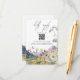 En vacker vildblomma och bröllop-bergsdesign. En unik design som användor vattenfärgen vildblommans botaniker och ett vattenfärgsbergslandskap i bakgrunden. En modern blommigt för vild med berg och floder vid sjöar. En utformning av ett elegant bröllop-kort med modernt inslag. Det finns också möjlighet att matcha bröllopsinbjudningar och andra artiklar i kontorsartiklar.