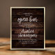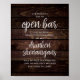 Our Wedding has an Open Bar, it is also being heavily photographed. So all Drunken Shenanigans will be well Document and Thoroughly mocked for years to come poster, in modern rustic design, cottage dark wood theme.