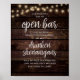 Our Wedding has an Open Bar, it is also being heavily photographed. So all Drunken Shenanigans will be well Document and Thoroughly mocked for years to come poster, in modern rustic design, cottage dark wood, string lights theme.