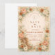 A romantic blush and peach floral design framed by a soft watercolor arch of roses, garden blooms, and airy pampas accents. Warm neutrals and muted sage greenery create an elegant, timeless aesthetic with a subtle western touch from the hat and rope detail. The composition feels refined yet natural — perfect for a boho western celebration, ranch wedding, or romantic garden ceremony. Fully customizable with your names and event details.