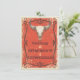 Underbar för alla Westerna Party, den här inbjudan innehåller ett vävt djurskalle mot en sliten röd bakgrund med dekorativt, pålitligt ram. Perfekt för cowboyen eller cowgirl party, pension party eller födelsedagen. McBooboos illustration av hand plockade.