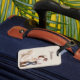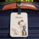 Lägg till en Western charm till bröllop med dessa unika bagagefördelar. Utformningen är ett vackert exempel på en cowboyfigur och hans brud i ett ömtåligt omfamnande, perfekt för ett rustiskt eller land temed bröllop.